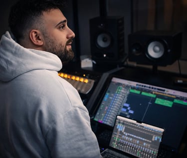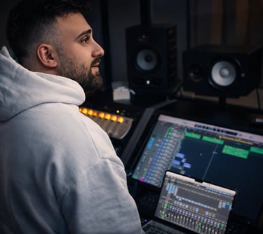 Behind every project there is a team driven by vision, precision, and creative instinct. We are producers, engineers, educators, and artists working within the same ecosystem, combining technical expertise with artistic sensitivity. Each member brings a distinct background, but we share the same standard: excellence in execution and authenticity in sound. Collaboration is at the core of what we do. Different skills, one direction, delivering experiences that resonate beyond the studio.